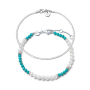 Fine Pearl & Turquoise Bracelet Stack Sterling Silver