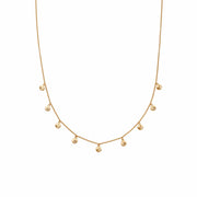 The layering necklace of dreams that catches the light wherever you go. Featuring hanging charms with fossil etchings on an adjustable 13" bobble chain. A shorter length necklace, this beauty works great as a base for any layered look. Pair with chains and a tee for a relaxed vibe or layer with pendants for a statement moment.