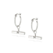 A modern spin on an old classic, these T Bar Earrings will become your new go-to. These chic charm earrings feature a bold T Bar charm hung from a drop hoop, perfect for multiple ear piercings to create a stacked look. Perfect gift for yourself or a loved one.